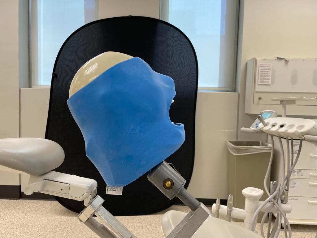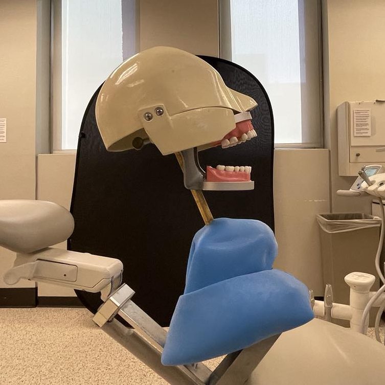 5. Pull the shroud up and over the typodont and cranium, until the nose of the shroud fits over the nose of the cranium.