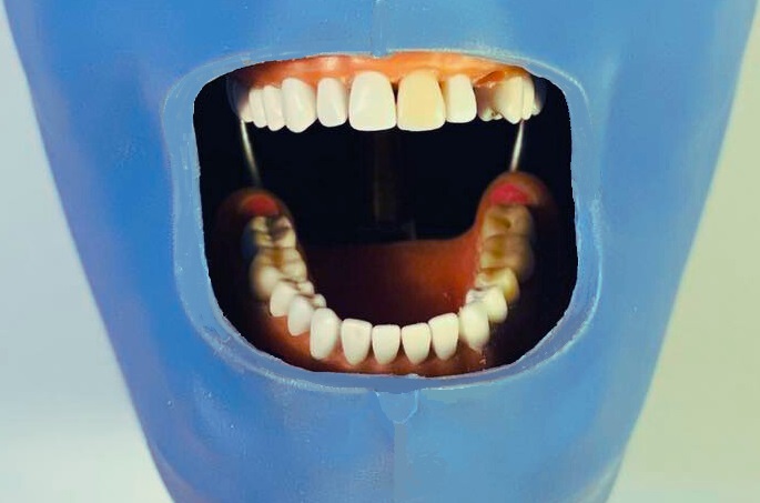 7. Check the position of the shroud over the typodont to ensure proposer placement.
